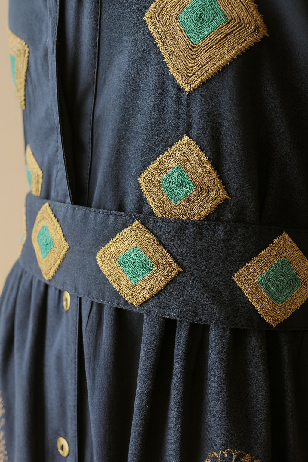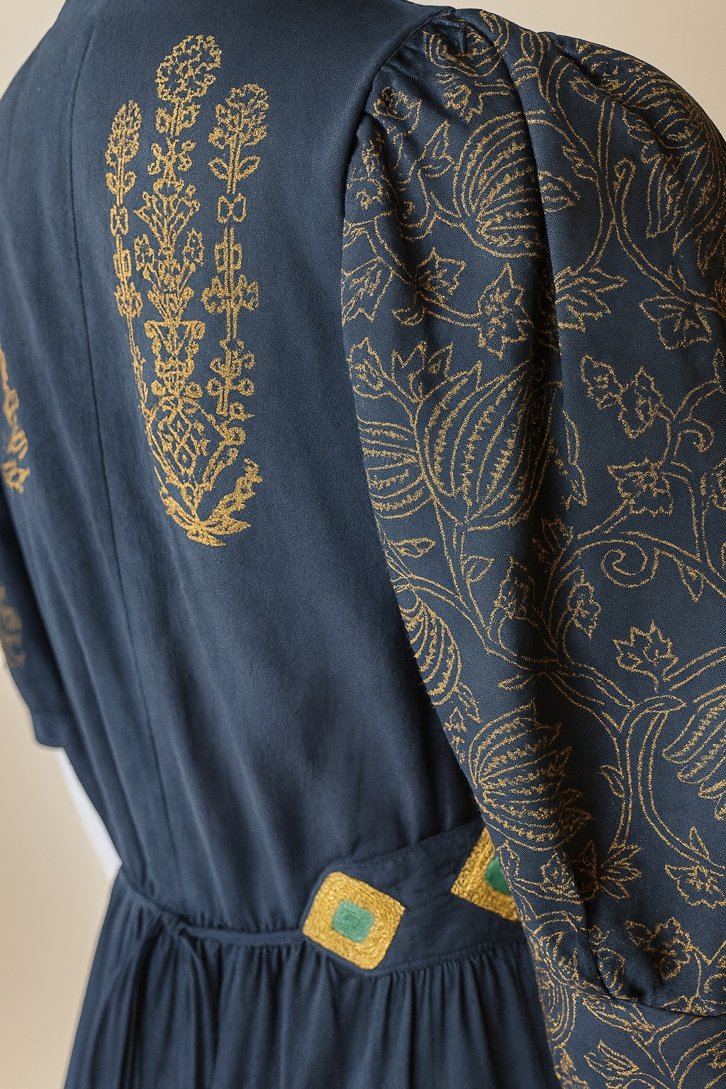 Vestido maxi con bordados en pedrería. Prenda en preventa, disponible para despacho a mediados de enero 2026.